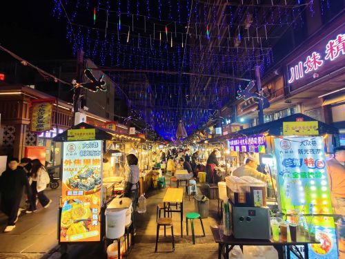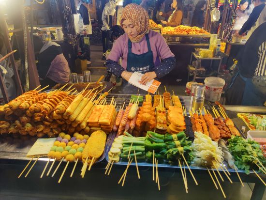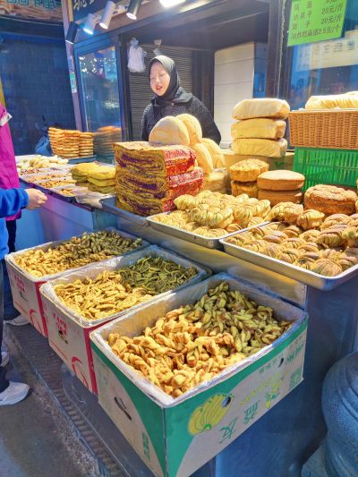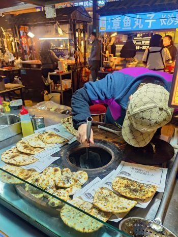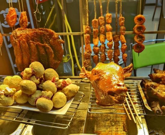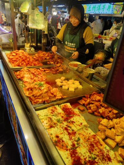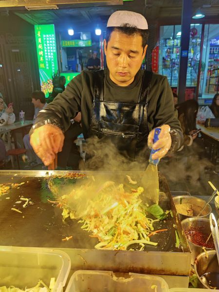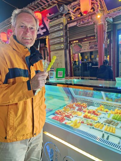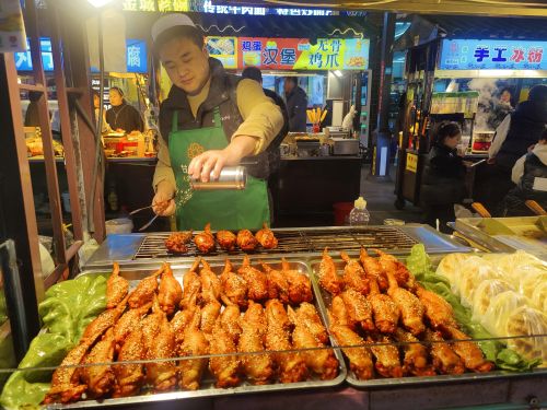 Eine lebhafte und sehr leckere Art am Abend zu essen sind die Nachtmärkte. In Fußgängerzonen reiht sich Stand an Stand. Es wird gebacken, frittiert, gegrillt und im Wok schnell zubereitet. Dazu noch etliches an süßem Nachtisch. In den kleinen Geschäften am Rand holt sich jeder was er zum Essen trinken möchte. Uns hat das chinesische Bier ausnahmslos geschmeckt. Das Tolle an den Nachtmärkten, sind die kleinen Portionen, sodass man sich prima durchprobieren kann. Alles wird frisch vor den eigenen Augen zubereitet. Wenn die Portionen mal größer ausfallen findet sich zwischen den Ständen immer ein kleiner Tisch und ein Hocker, um in Ruhe zu essen.