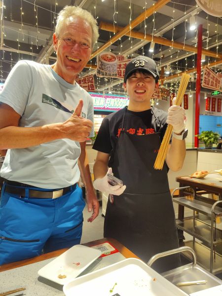 Mittags dann die leckeren Nudelsuppen, je nach Landesteil mit den unterschiedlichsten Nudeln. Die Nudeln werden ganz frisch gemacht. Stück Teig, ein paar Mal in die Luft geworfen, auf den Tisch geschlagen, durch die Finger gezogen und rein ins kochende Wasser. Für uns sieht das aus wie reine Magie. Dauert keine zwei Minuten.