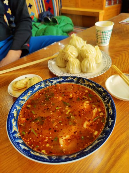 Für uns beginnt der Tag mit einem guten Frühstück. In all den Hotels immer eine Überraschung was denn so auf den Büffets steht. Mitunter haben wir das angebotene Frühstück ausfallen lassen. Rindersuppe mit Nudeln und Gemüse mit viel Knoblauch ist nichts für uns am Morgen. Oftmals haben wir uns selbst geholfen. Marmelade aus dem Supermarkt, mitunter sehr leckeres Brot von meist zentralasatischen Bäckern, Spiegelei und etwas Salat und Gemüse dazu.
