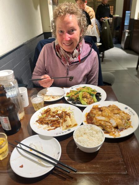 Ansonsten wird von Bildern an der Wand ausgesucht und bestellt. Immer eine Überraschung, was dann wirklich auf den Tisch kommt. Ohne mit Stäbchen essen zu können, ist man allerdings verloren.